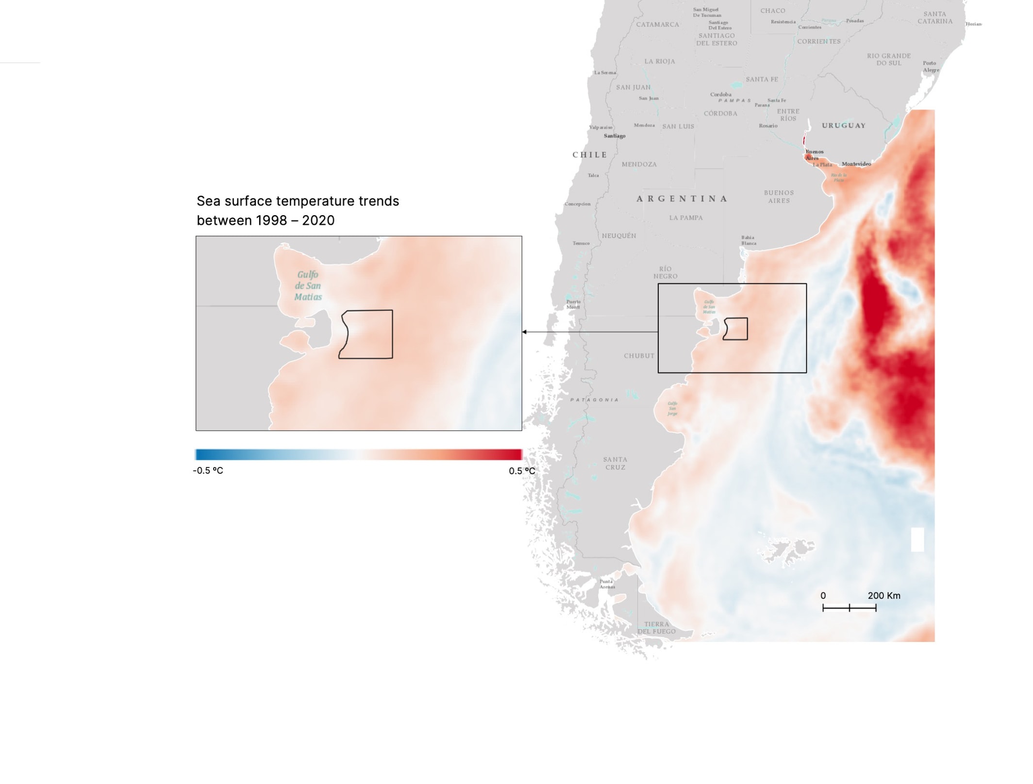 The establishment of a marine protected area called “Frente Valdés” is underway. Although a preliminary boundary for this area was proposed in 2022, it is essential to consider the impacts of climate change on various oceanic indicators to understand the evolution of biodiversity hotspots, and adjust the protected area accordingly.