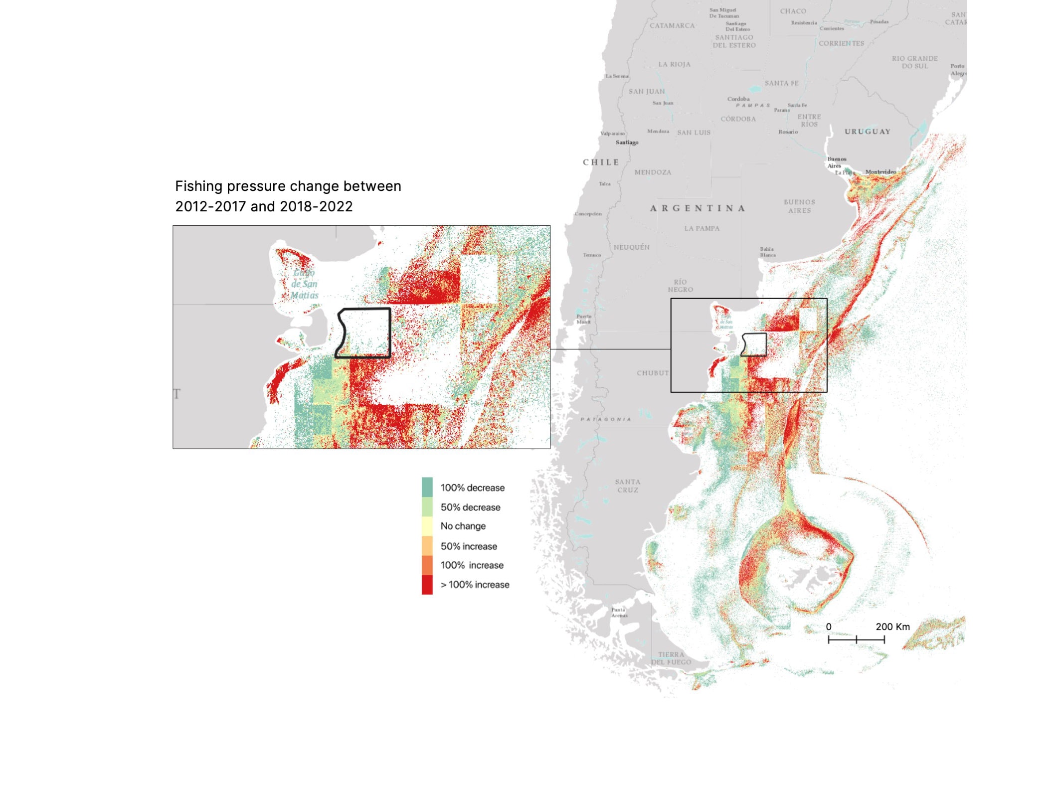 Based on annual fishing hours dataset obtained from the Global Fishing Watch, Lobelia compared past fishing pressure and recent activity.