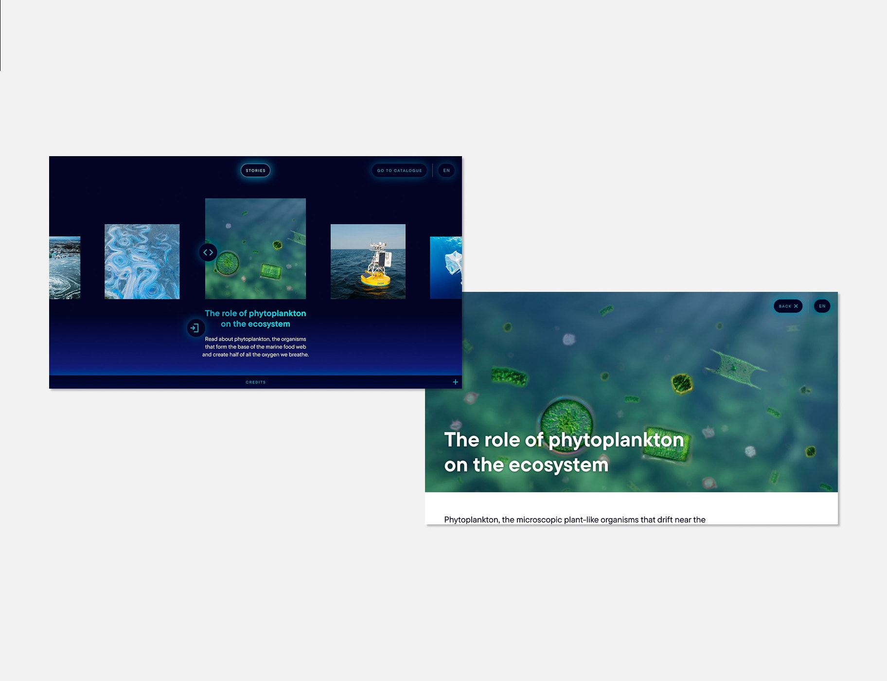 A unique interactive interface was designed for the user to browse the catalogue of available datasets and stories.